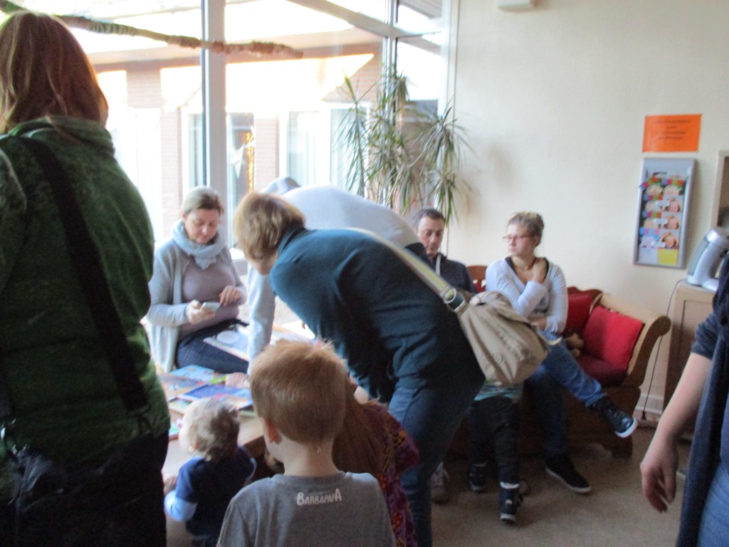 Die Eltern, Großeltern und Kinder nutzten die Pausen um einen Blick in die ausgelegten Bücher der KÖB St. Anna zu werfen. Es wurde ausgiebig geschaut und vorgelesen.