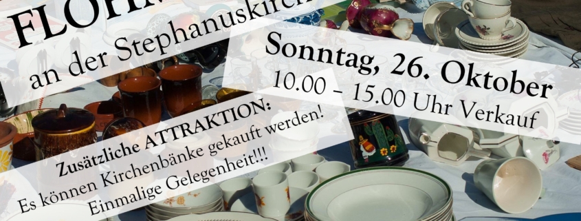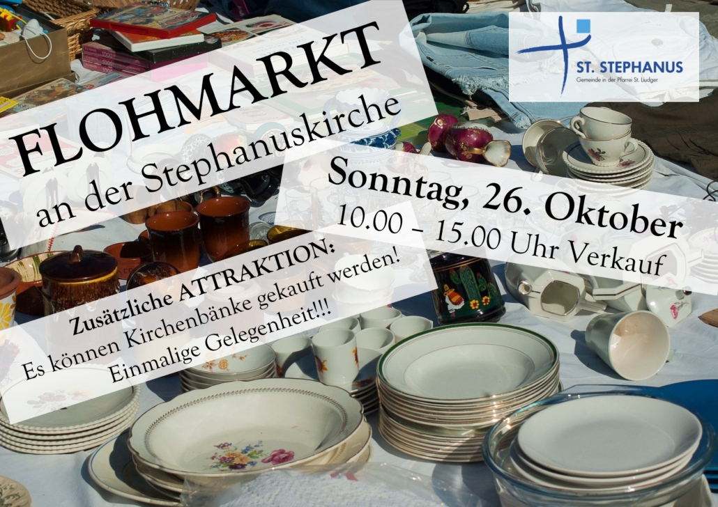 Am Sonntag, 26. Oktober, veranstaltet die Gemeinde einen Flohmarkt an der Stephanuskirche. Der Verkauf läuft von 10.00 – 15.00 Uhr.