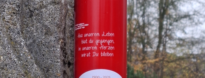In Dankbarkeit und stillem Gedenken erinnern wir uns im Jubiläumsjahr besonders an die Frauen unserer kfd-Gemeinschaft, die von uns gegangen sind. Sie haben mit ihrem Glauben, ihrem Engagement und ihrer Herzlichkeit das Leben vieler Menschen bereichert. Ihr Einsatz für Gemeinschaft, Nächstenliebe und Solidarität bleibt bei uns ein wertvolles Vermächtnis. Insgesamt konnten wir noch für 165 Frauen ein Licht der Erinnerung an den Gräbern aufstellen.