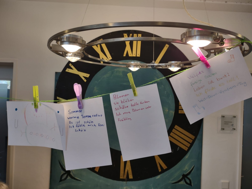Für Kinder gab es eine besondere Aktion: Sie konnten unter Anleitung ein eigenes „Elfchen“ zu einem selbst ausgesuchten Thema verfassen. Elfchen sind kleine Gedichte, die aus elf Wörtern verteilt auf fünf Zeilen bestehen. In der Regel lernen Kinder diese Gedichtform bereits in der Grundschule, so dass sich im Gegensatz zu den Erwachsenen fast alle gut damit auskannten – demnach war der Andrang groß! Eine Auswahl der Ergebnisse finden Sie aktuell als Aushang in den Fenstern der Bücherei.