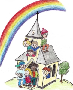 Wir singen miteinander, hören Geschichten zu Jesus und von Gott, beten, malen, basteln, spielen und versuchen